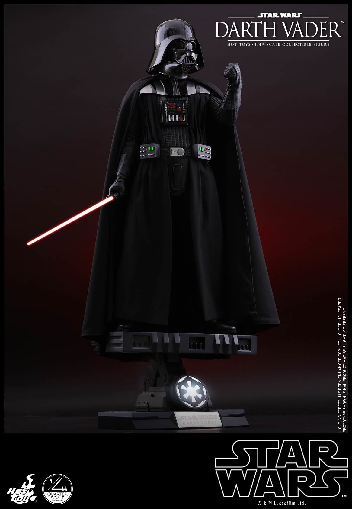 The 1/4th scale Darth Vader Collectible Figure specially features: