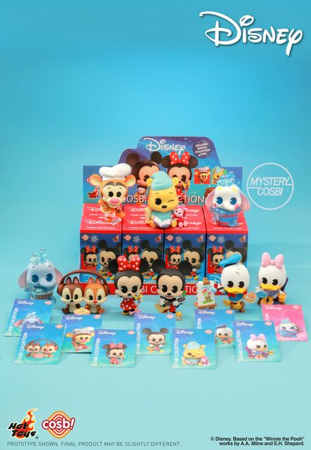 Disney Cosbi Collection features Mickey playing guitar, Minnie singing, Donald Duck painting, Daisy Duck cozying up with a book, Dumbo taking a bath in a cask, Chip 'n Dale listening to music and enjoying their popcorn, Tigger cooking, Winnie-the-Pooh and Piglet in their pajamas reading bedtime stories and bathing Dumbo with face painting the Mystery Cosbi. Each random package box includes a 6.5 – 9 cm tall Cosbi collectible of your favorite characters, a special collection card, comes sealed in a foil bag and blind boxed to preserve the rarity and collectability of the series. Available in selected markets only.