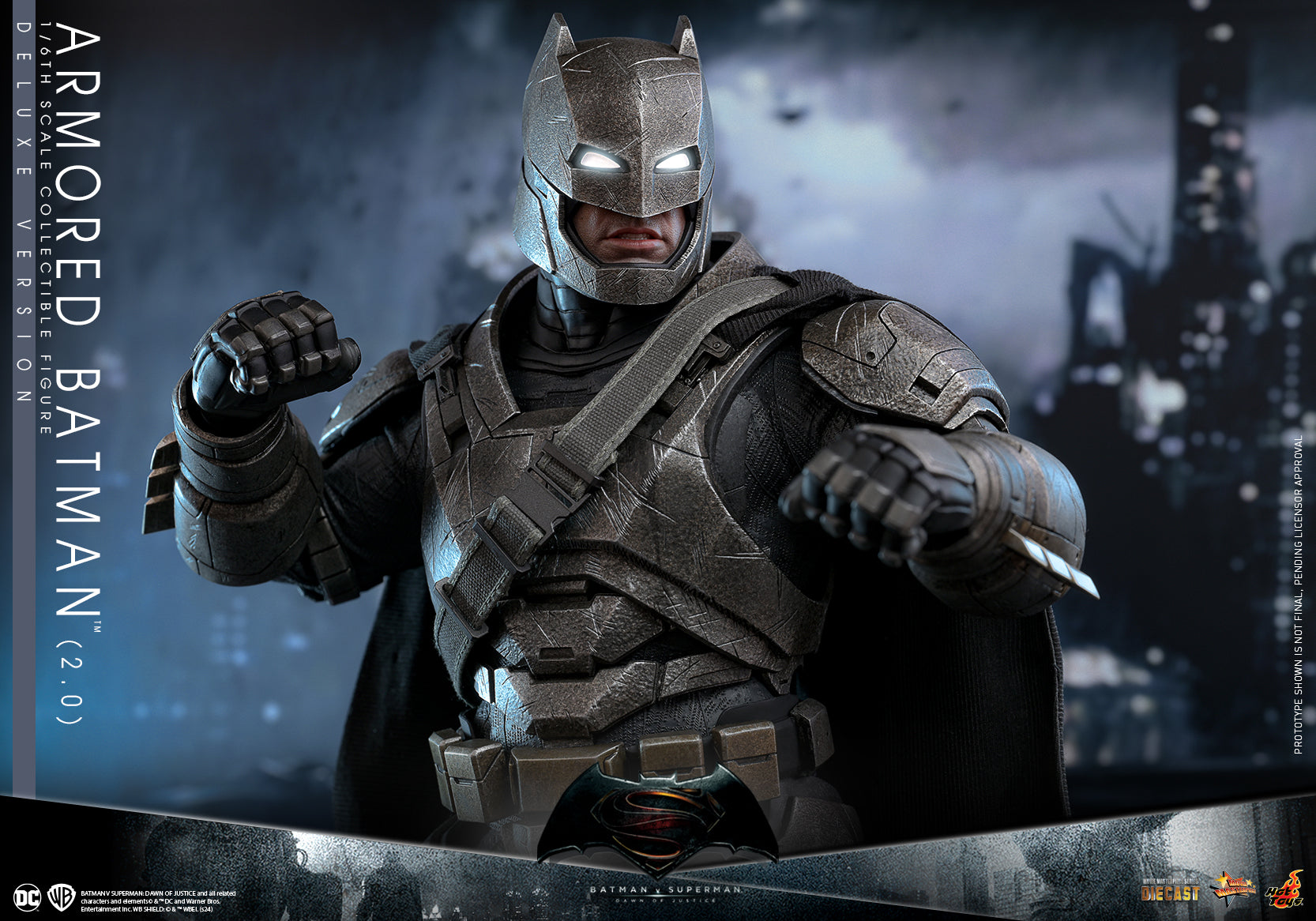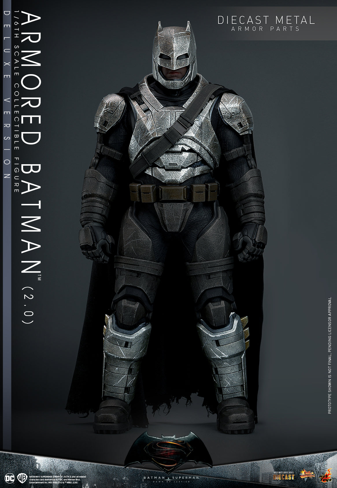 Hot Toys is proud to introduce the Deluxe Version of 1/6th scale Armored Batman (2.0) collectible figure! Meticulously crafted, the deluxe version exclusively captures Batman in his heavily battle-damaged armored suit, inspired by the explosive battle between the Dark Knight of Gotham and the Son of Krypton