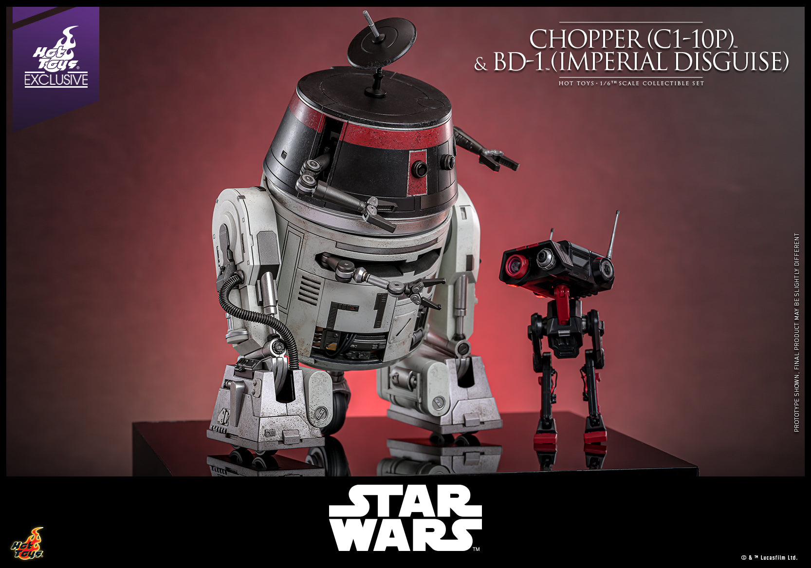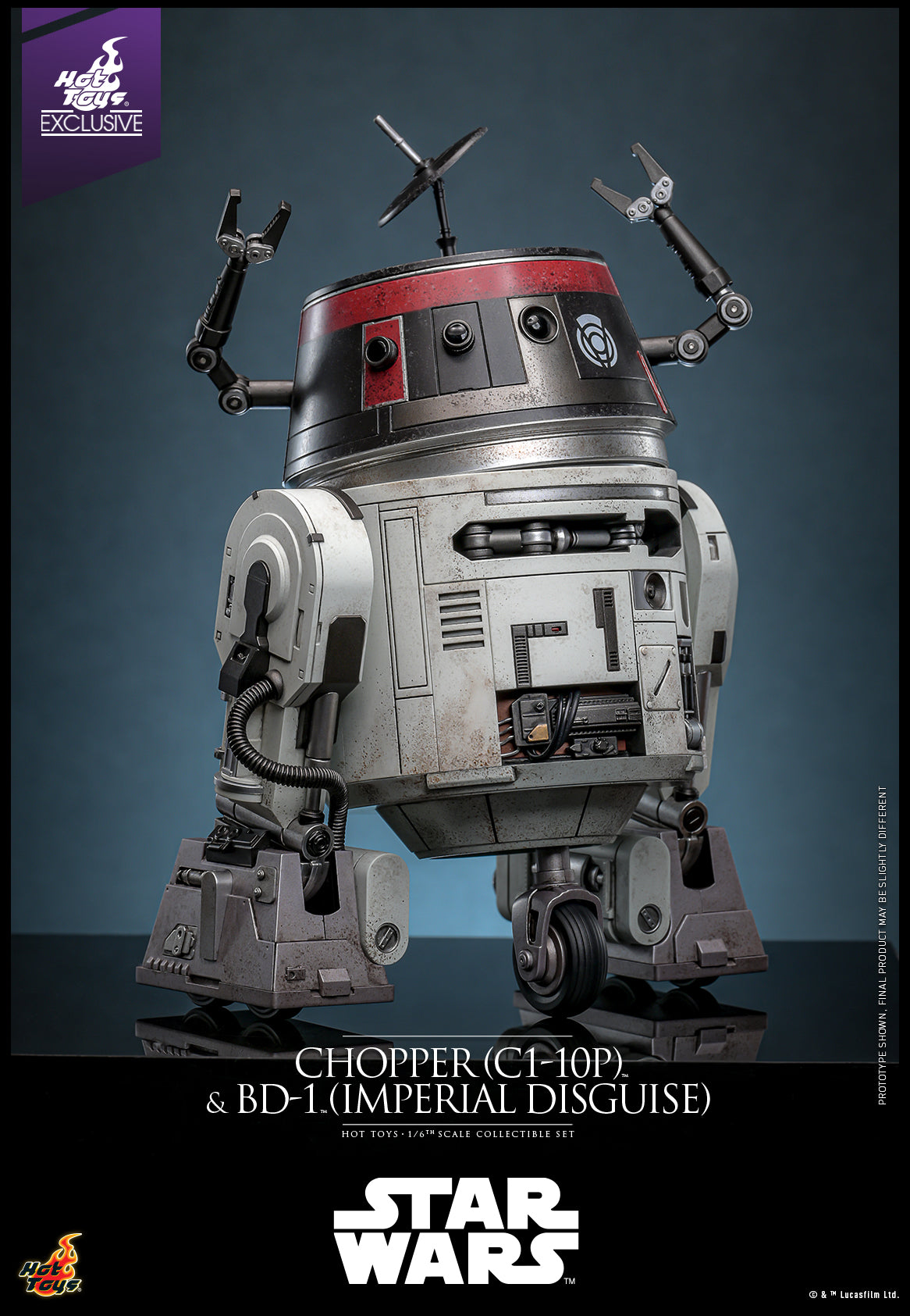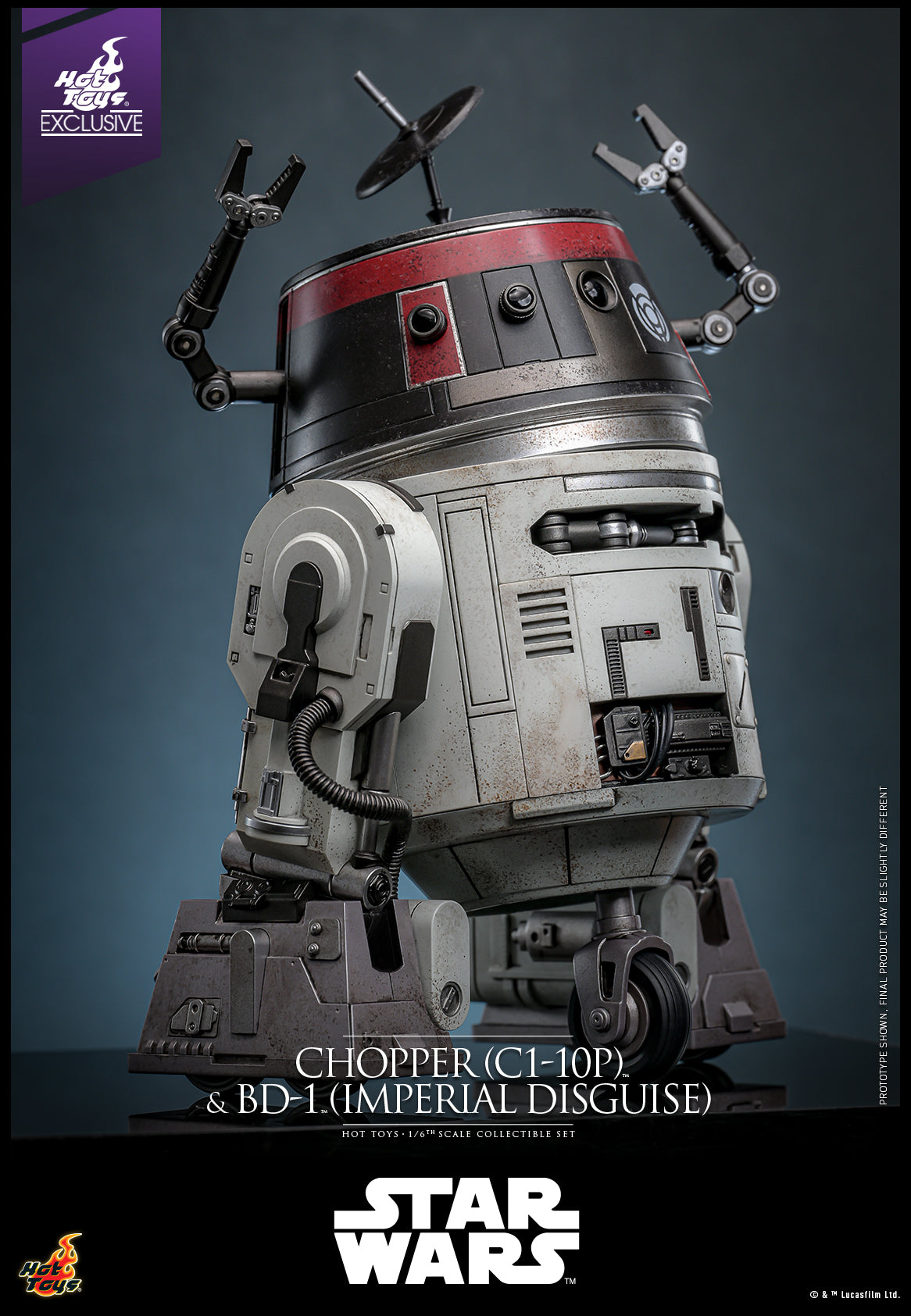 The 1/6th scale Chopper (C1-10P™) & BD-1™ (Imperial Disguise) Collectible Set specially features: